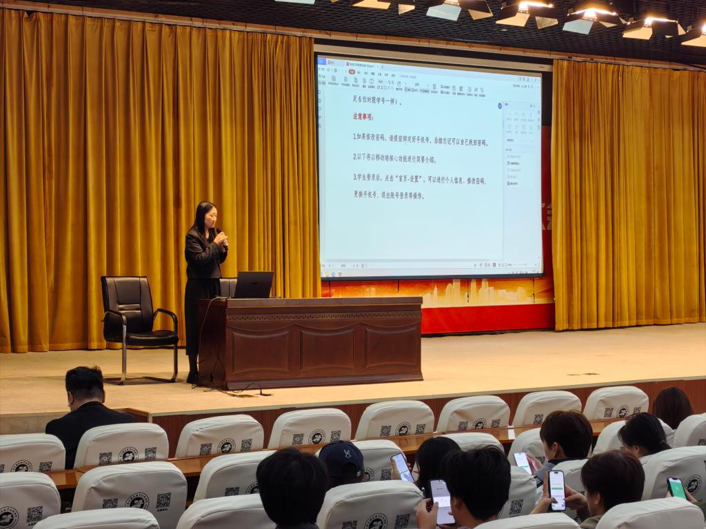 为切实做好2026届毕业生实习工作,强化学生安全意识,确保实习任务顺利开展,11月6日下午,建筑与数智创意学院在学校办公楼报告厅召开了2026届毕业生实习动员与安全教育大会。学院副院长杨艳、教学秘书苏玲及2026届全体毕业生出席了本次会议。