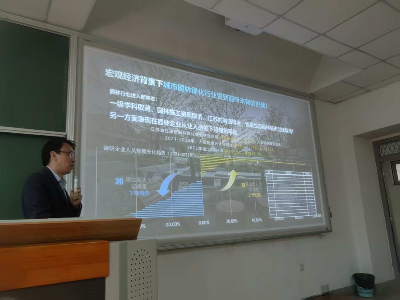 田晓云剖析存量更新转型期的市场变化,分享其团队由大尺度城市、生态、水利、湿地等国家和省级重大项目,转向和美乡村、社区公园、庭院景观的实践路径;并指出环艺园林学生须“识材料、会设计、懂管理、精技术”,以跨界思维融合艺术审美与工程技术,在智能化时代创造既“美”且“妙”的作品。