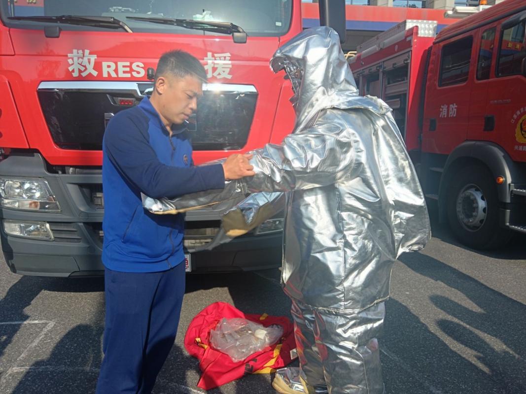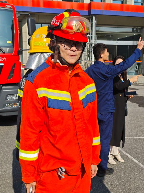在实操体验环节,学生们热情高涨。在消防员的耐心指导下,他们纷纷穿上厚重的消防服,戴上头盔,瞬间化身“小小消防员”,亲身感受消防员执行任务时的艰辛与不易。