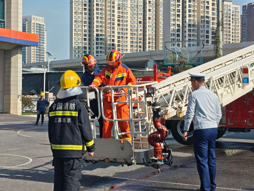 随后,为让学生更直观地了解高空救援作业,消防员们展示了云梯车这一先进救援装备。云梯车缓缓升起,伸展至数十米高空,其稳定且灵活的操作性能引得现场学生阵阵惊叹。在消防员的全程陪同与悉心指导下,部分学生怀着紧张又兴奋的心情,亲自登上云梯车体验。当身处高空,俯瞰周边环境时,学生们不仅感受到了救援工作的高度挑战性,也深刻体会到消防员在高空救援时所需具备的强大心理素质和专业技能,进一步加深了对消防救援工作的理解与敬意。