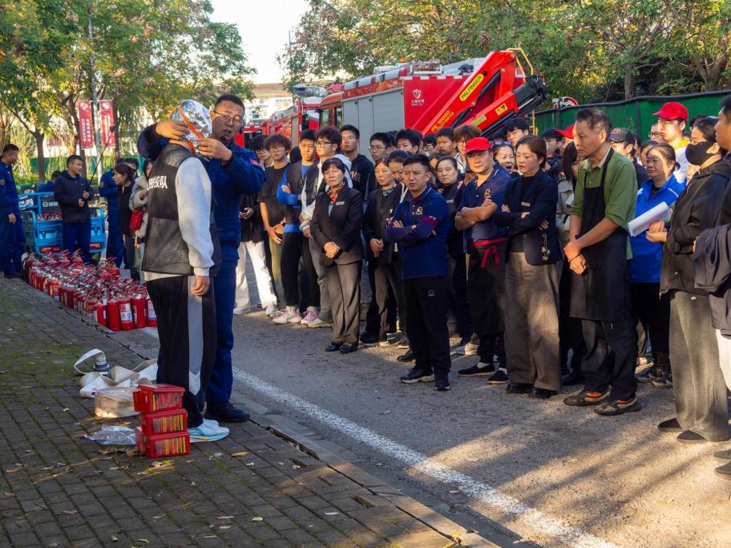 为提升师生员工安全骨干队伍初起火灾应急处置能力,11月12日下午,我校安全保卫处联合兴浦路消防救援站组织开展“真灭火、真动作”消防技能培训与实战演练活动。教职工安全员、2025级学生安全员、大学生护校队队员、驻校企业员工及安保人员等200余人参加活动。