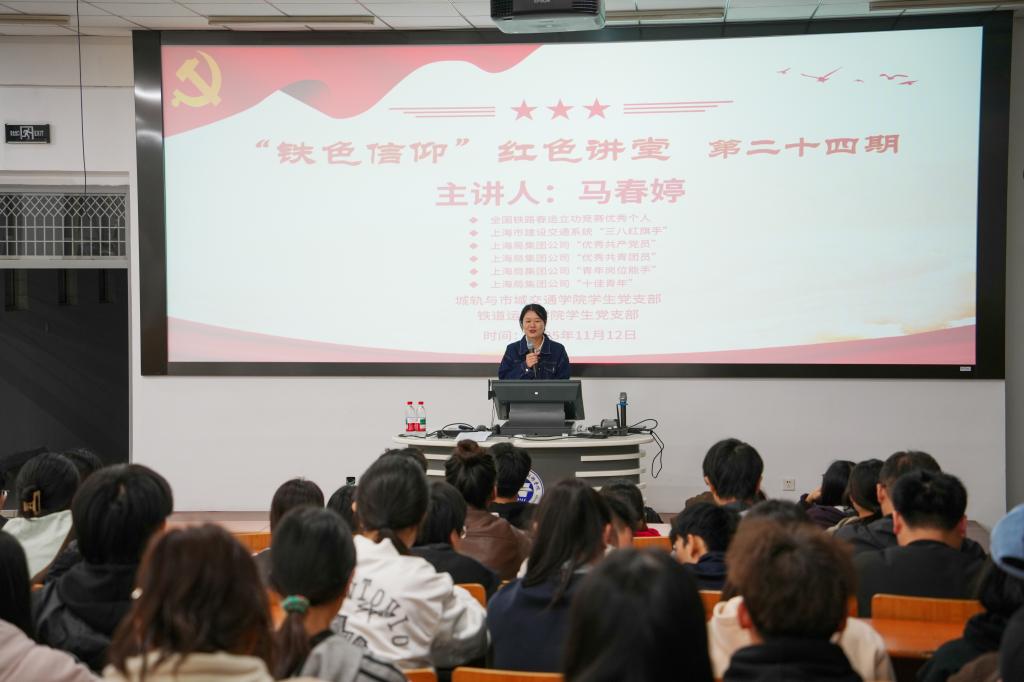 马春婷还结合自身成长轨迹,为同学们指明了努力方向。她强调,作为一名共产党员,要持续深化政治理论学习,不断提升政治素养,时刻保持政治上的清醒与坚定。同时,要不断钻研业务技能,增强工作本领,以扎实的专业技能应对各种挑战。她以自己苦练技能、坚持技能立身的实际行动,鼓励同学们勇于探索、敢于创新,在铁路事业的大舞台上绽放青春光彩。