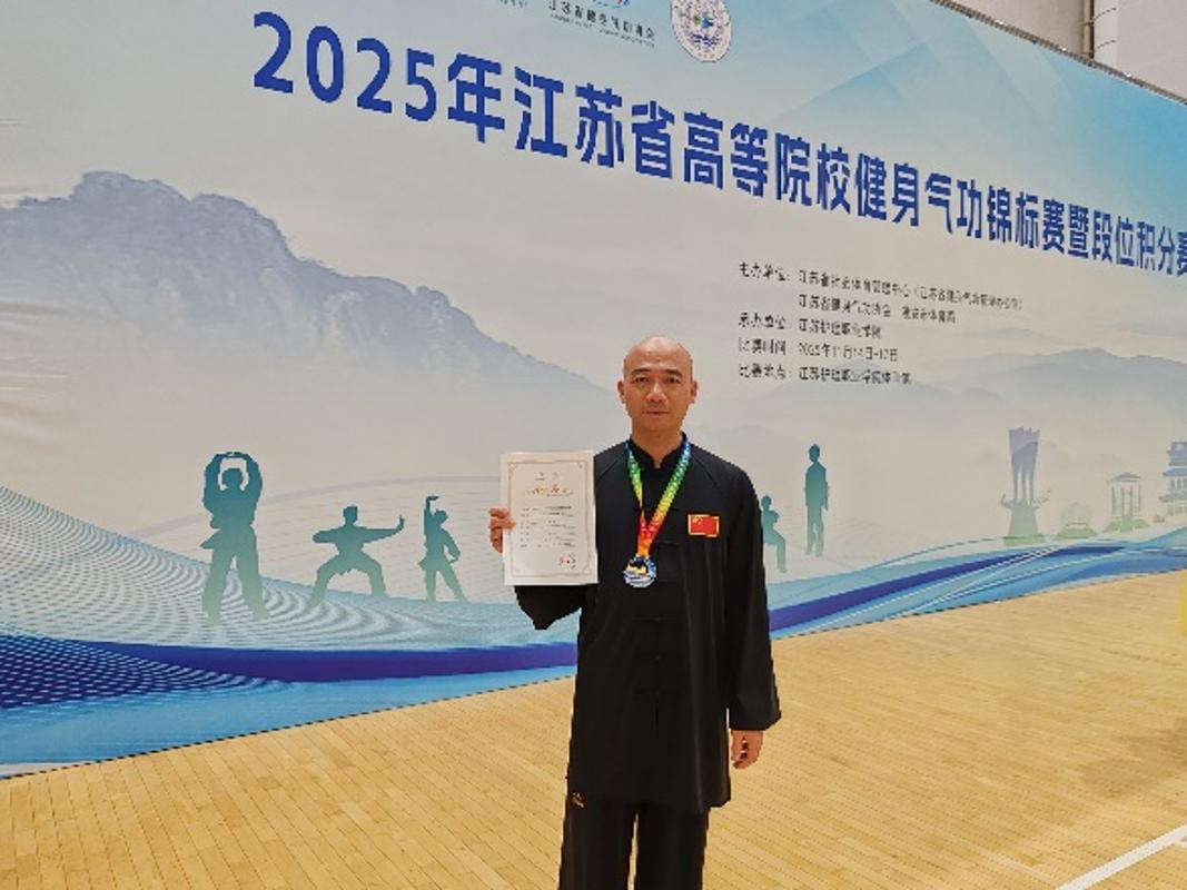 近日,2025年江苏省高等院校健身气功锦标赛暨段位积分赛圆满落幕,我校教师沈骏在比赛中获佳绩。