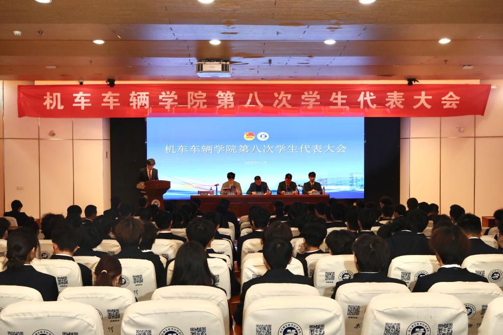 2025年11月21日,南京铁道职业技术学院机车车辆学院第八次学生代表大会在图书馆报告厅召开。本次大会承载着广大青年的期望,机车车辆学院的学子们齐聚于此,共同为学院发展建言献策,谋划未来美好蓝图。机车车辆学院党总支副书记高明、团总支书记陈浩博、校学生会执行主席金晓宇和120名正式代表参加会议,会议由学生会主席团成员陈天煜主持。