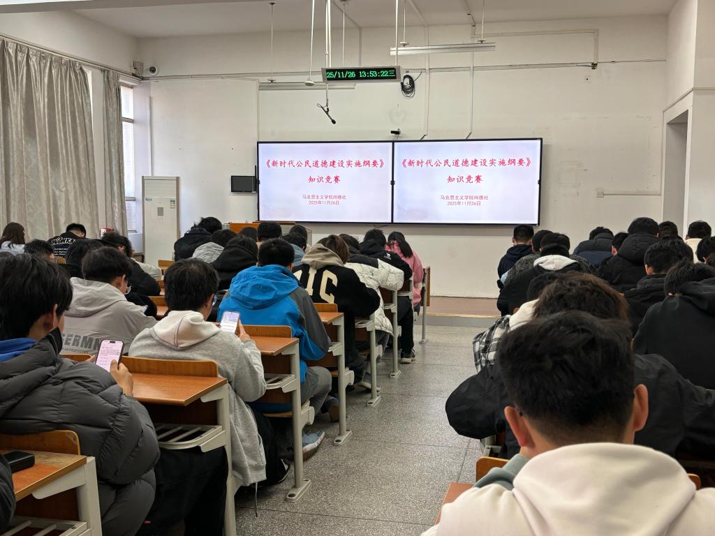 11月26日下午,马克思主义学院在行知楼B208举办了《新时代公民道德建设实施纲要》知识竞赛。本次竞赛由尚德社承办,面向全体大一同学,是马克思主义学院2025年技能竞赛月活动之一。
