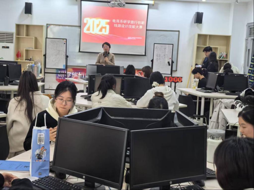 夏军老师以江苏省职业院校技能大赛研学旅行赛项为起点,系统阐述了该赛项的主要内容与赛事流程,并着重分析了课程方案设计、方案讲解与模拟展示等关键环节,鼓励更多同学积极参与研学旅行项目。同时,夏军老师结合研学旅行发展趋势,与同学们分享了研学旅行产品策划、目的地资源整合、安全管理实操等行业前沿内容,以及文旅企业对复合型人才的核心需求,为同学们的职业生涯规划提供了清晰的职业导航与实践指引。
