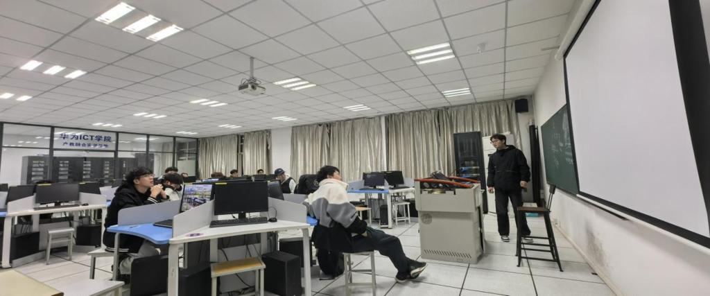 为保障竞赛质量,学院于11月17日至25日晚间18:30-21:00开放天佑楼B503实训室,组织专业教师、通信社团上一届社长及骨干成员开展“理论+实操”密集培训。培训期间,实训室灯火通明,师生互动热烈,形成“做题-答疑-总结-再练习”的闭环训练模式。同学们以“勤学善思、笃行实干”的态度投入训练,展现了新时代青年的奋斗风貌。