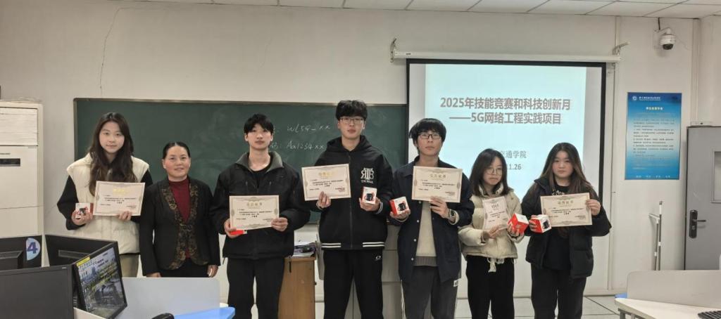 2025年11月26日,未来交通学院——“技能竞赛与科技创新月”系列活动之“5G网络工程实践”竞赛在天佑楼B503圆满落幕。本次竞赛以锤炼学生5G核心技术应用能力为目标,深度对接行业真实场景,通过理论与实践的融合考核,为通信专业人才培养注入新动能。