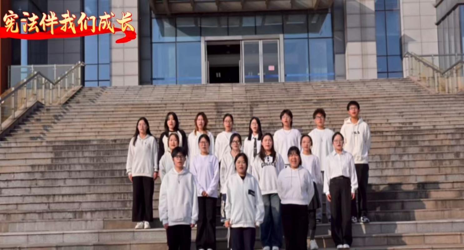 活动筹备阶段,学院学生社区党支部全程统筹指导,将宪法宣传与青年思想引领深度融合。党员骨干主动牵头,通过线上号召、线下邀约等方式广泛动员,认真做好协调场地、音乐编排等细节,为活动顺利开展筑牢组织基础。拍摄现场,同学们精神抖擞、整齐列队,伴随着激昂旋律齐声唱响经典曲目。歌词中对宪法精神的诠释、对法治信仰的坚守,通过真挚歌声娓娓道来,展现了学子们尊法学法守法用法的坚定信念。