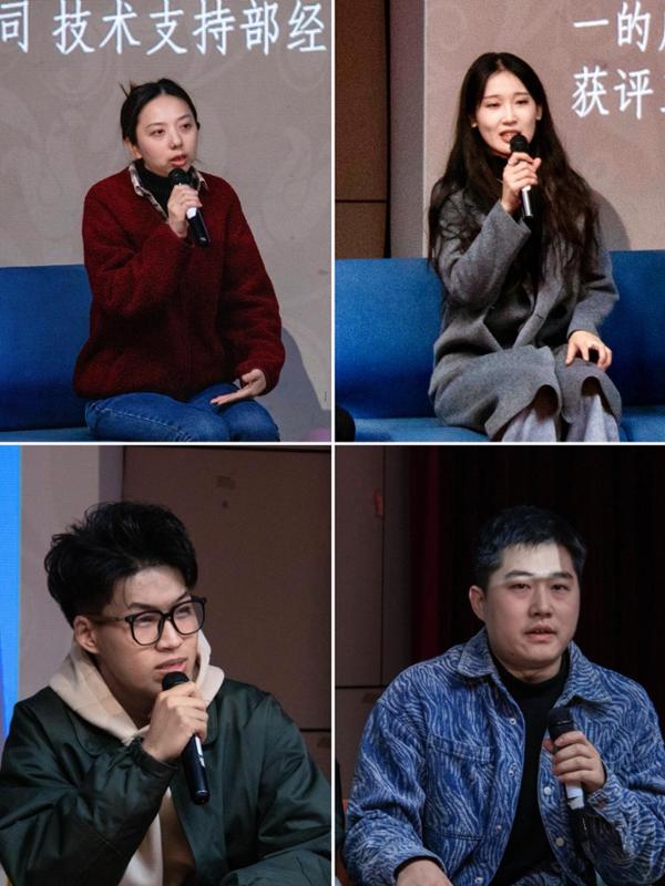 报告会上,四位校友结合自身经历进行了真挚分享。2006级旅游管理(英语方向)校友汤灵艳,现任中国国旅(江苏)技术支持部经理,她讲述了从专业学习到行业深耕的跨越历程,强调了外语能力与专业技能融合的重要性。2022级大数据与会计专业校友陈春晖,现就读于南京晓庄学院财务管理专业,她分享了专科阶段扎实学习、成功专升本并继续深造的心得,为学弟学妹们的学业规划提供了参考。2018级铁路物流管理专业校友刘培航,现任职于中国铁路上海局集团有限公司徐州机务段电力机车司机,他以亲身经历诠释了精益求精的工匠精神在轨道交通领域的关键作用。2019级国际商务专业校友程梓轩,现任上海艾洛斯供应链南京分公司经理,他分享了在国际贸易与供应链管理领域的快速成长经验,分析了行业发展趋势与所需核心能力。四位校友的故事鲜活生动,贴近学生实际,现场互动热烈,掌声不断。
