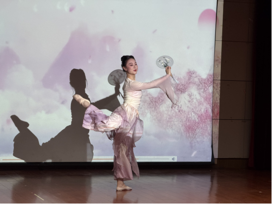 决赛中,入围选手竞展风采,呈现出较高的艺术水准与舞台表现力。张航瑄同学带来了充满古典意境的歌曲《青玉案・元夕》,将大家带入古代元宵灯会的画卷。狄场旭、陈安琦同学的朗诵《祈祷》《赞美》以“家国情怀”为核心,成为整场竞赛的思政亮点;陈奕乔和樊欣悦同学带来的舞蹈《红马》《娶》,舞姿舒展灵动,既有古典舞蹈的柔美婉约,又不失青春昂扬的活力。康连元同学带来的长笛《晴天》,清澈悠扬的笛声如春风拂面,瞬间将观众带入美好的记忆。台上参赛选手们投入的表演,台下各参赛队伍的“亲友团”热情助威,将比赛氛围推向高潮。