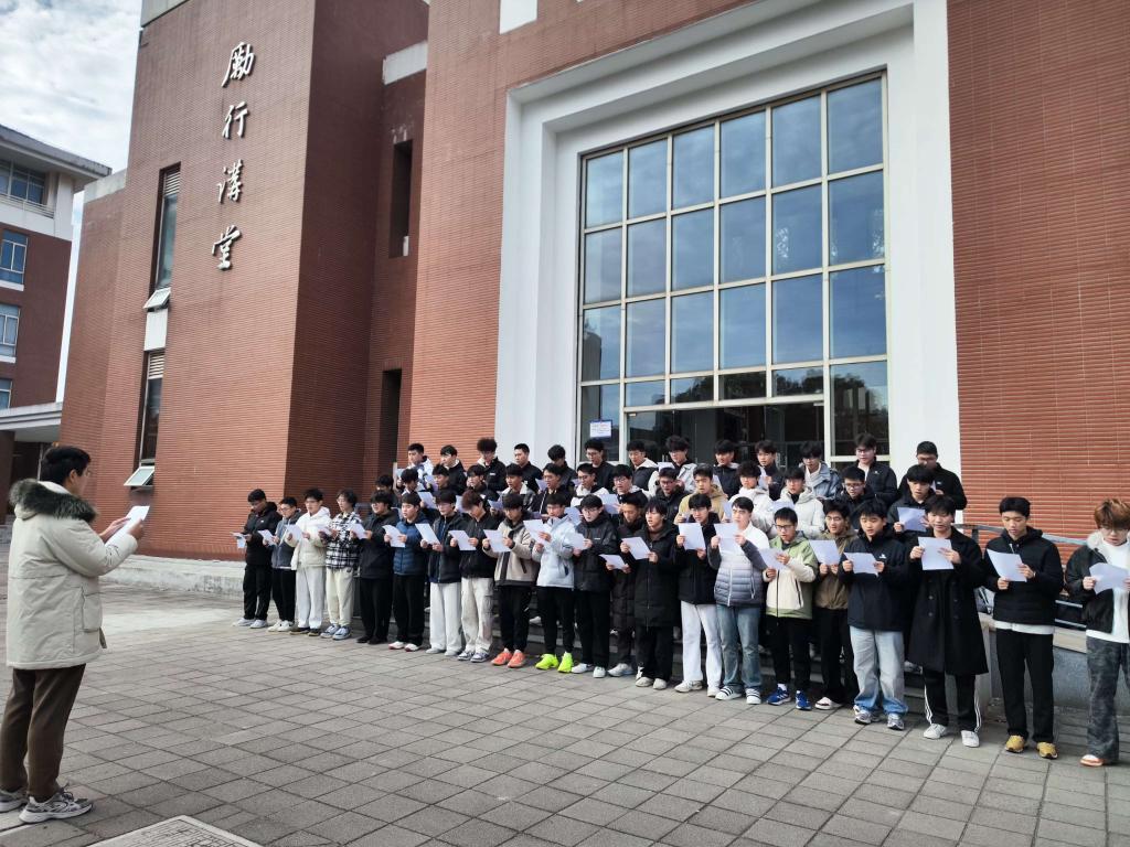 各班级立足实际、创新形式,充分调动学生参与热情。教室内,同学们衣着整洁,在班长带领下齐声诵读宪法重点条款,并围绕“青年与宪法”展开简短交流,将法律条文与成长经历紧密结合;宿舍中,大家围坐一圈,通过手机投屏共读宪法原文,并进行热烈的讨论,方寸之间洋溢着浓厚的学习氛围;励行讲堂前的广场上,部分班级列队晨读,迎着朝阳、声音铿锵,成为校园一道亮丽的法治风景线。“以前觉得宪法离我们很远,现在才真正体会到它就在身边,与我们的学习生活息息相关。”2025级铁道机车专业学生张同学感慨道。辅导员全程参与指导,推动活动走深走实、见行见效,让法治之声持续回响、深入人心。