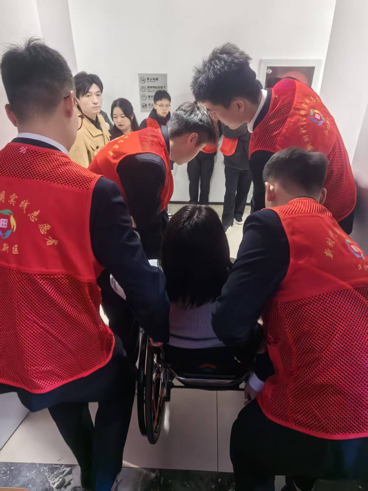在大会丰富的展演与发布环节,学子们的身影穿梭于台前幕后,提供了坚实的后勤支持。他们先后为各街道的文明实践品牌展演搬运道具,保障了表演环节的顺利呈现。在江北新区首批文明实践文化服务联盟签约仪式中,志愿者们稳妥、及时地搬运并安置签约台,为重要仪式的举行做好了场地准备。此外,在音诗画节目《轮椅上的太阳花》准备期间,志愿者主动协助表演者顺利上台,展现了细致入微的人文关怀。