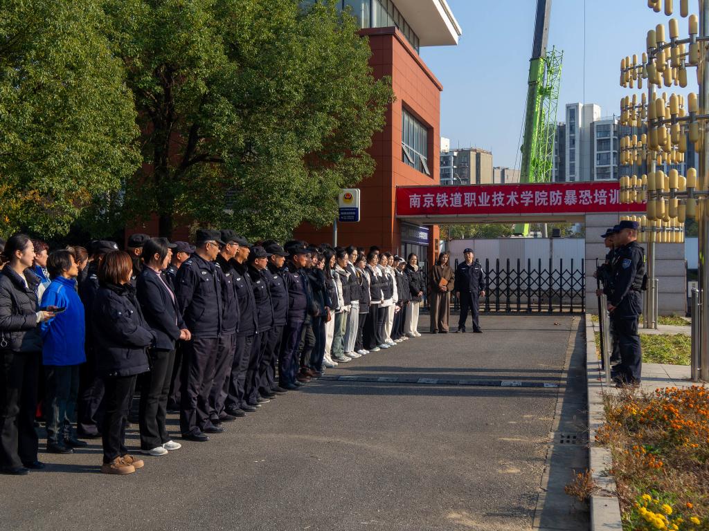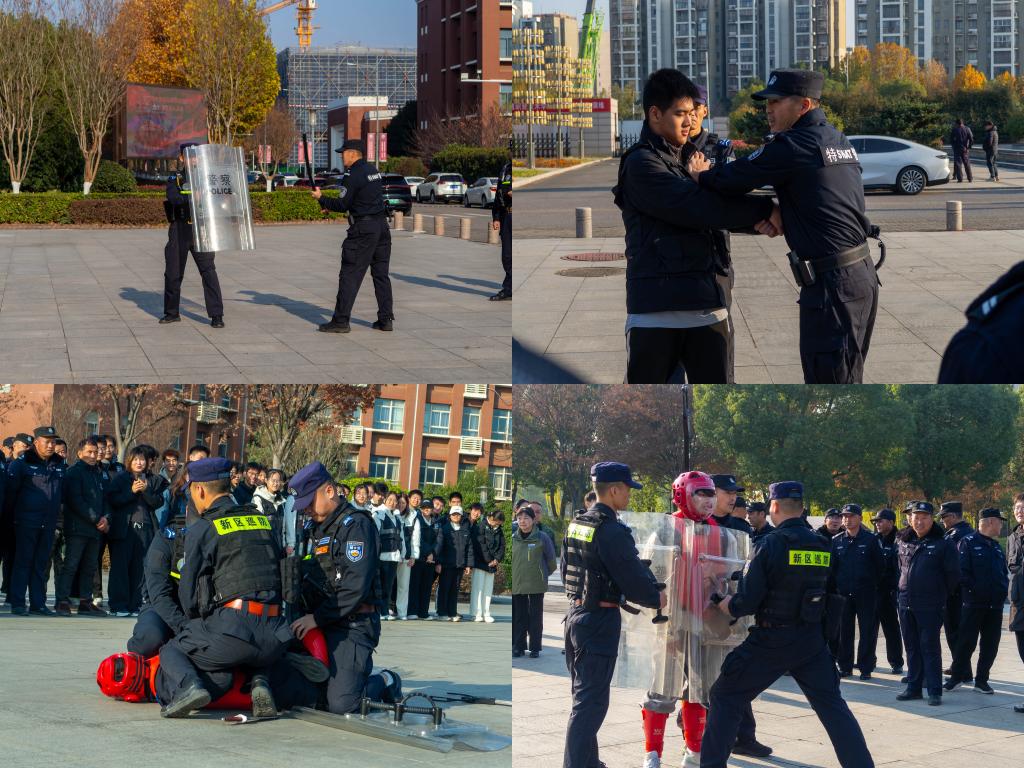 为强化校园安全防范能力,提升应急处突水平,12月5日下午,学校安全保卫处邀请江北新区公安分局巡特警支队教官团队来校开展防暴恐处置知识培训与应急演练。学校保安队员、物业管理人员及大学生护校队员等90余人参加活动。