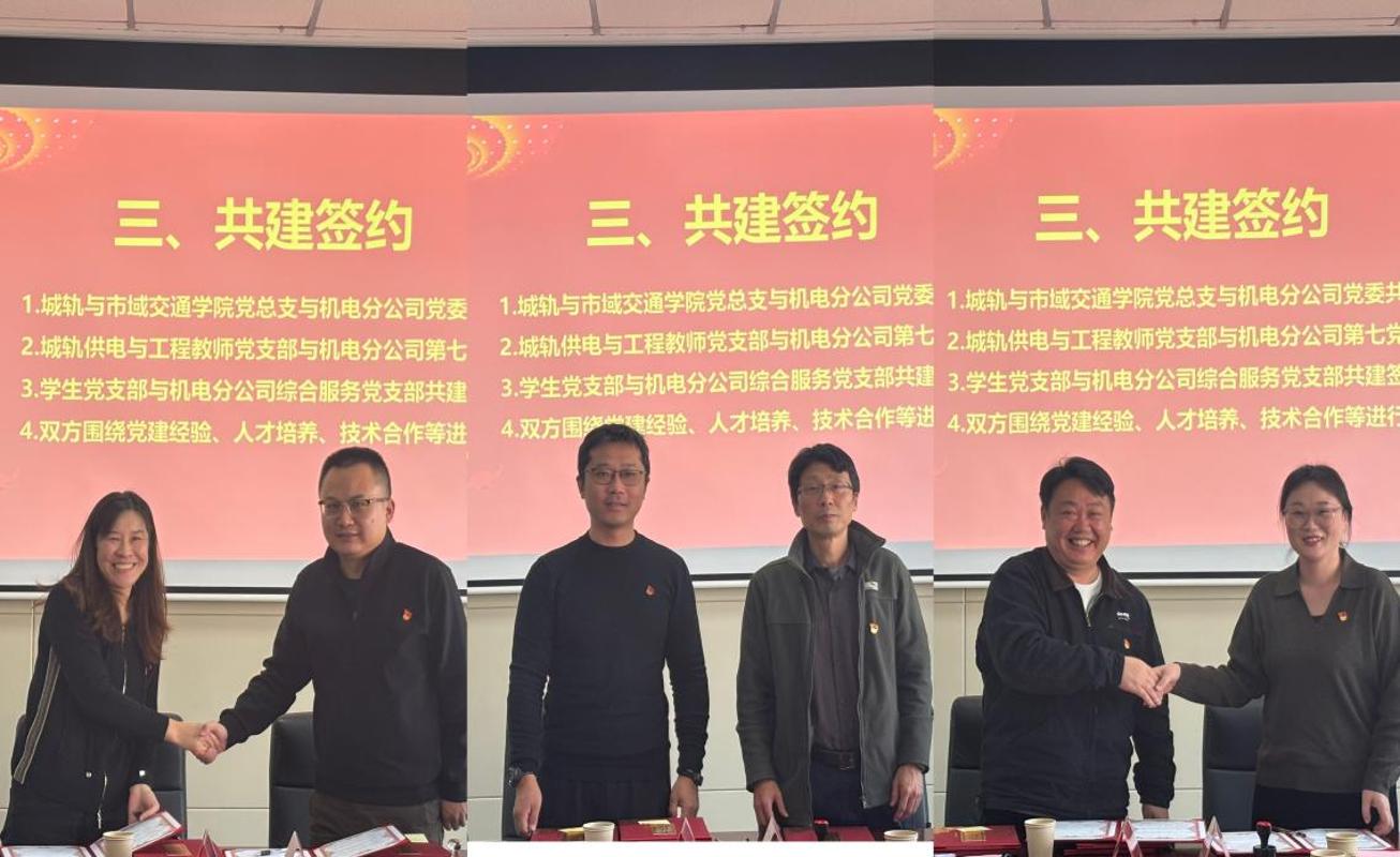 随后,双方进行共建协议签约。在与会人员的共同见证下,城轨与市域交通学院党总支与南京地铁运营有限责任公司机电分公司党委、城轨供电与工程教师党支部与机电分公司第七党支部、学生党支部与机电分公司综合服务党支部分别签署结对共建协议,并围绕如何以共建促党建、以党建促发展进行了深入座谈交流,并初步规划了未来的合作方向与重点。
