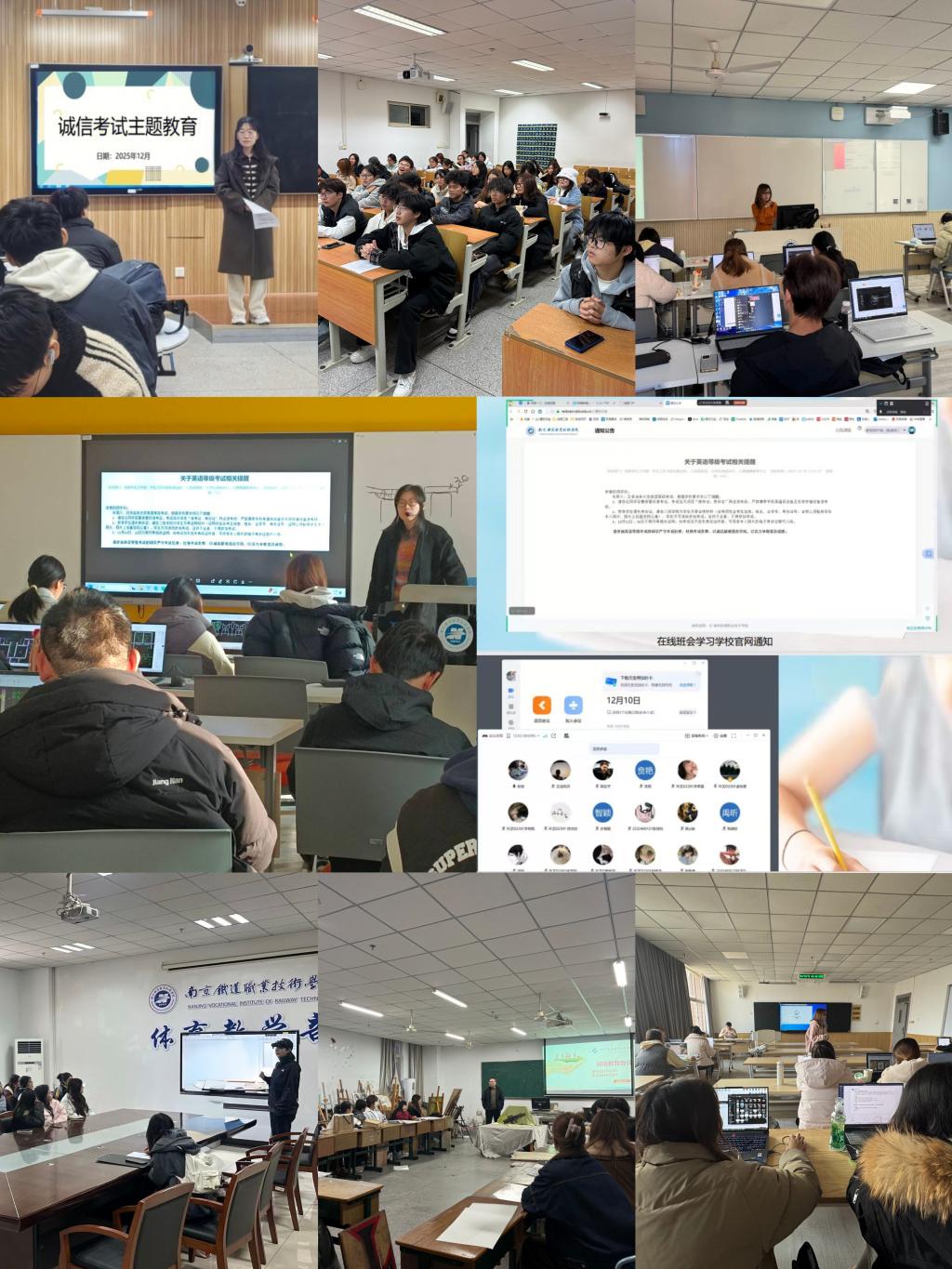 线下班会中,班主任们聚焦“诚信”核心,通过解读学生手册中关于考试作弊处分的文件条款,让学生深刻认识作弊行为对个人成长、学习风气的负面影响。同时,班主任针对英语等级考试及期末两类考试的备考难点进行梳理指导,帮助学生调整心态、科学备考。班会上,学生们还通过考前经验分享等形式深化认知,不少学生表示,将以诚信为笔,凭借真实学识应对考试,拒绝任何违规违纪行为。大三学生采用线上班会同步联动。