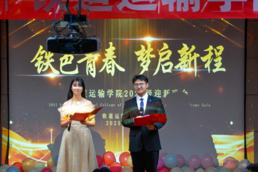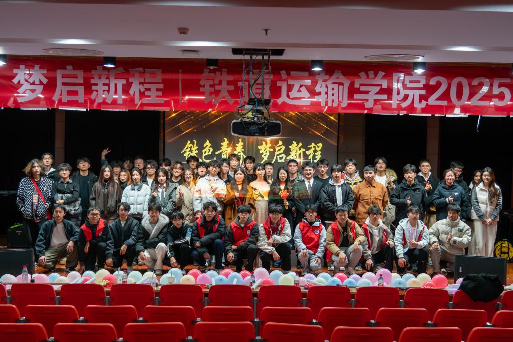 为热烈欢迎2025级新同学,展现学院风采,营造积极向上的校园文化氛围,铁道运输学院于12月12日晚在大学生活动中心报告厅隆重举办“铁色青春,梦启新程”2025级迎新晚会。学院教师代表及全体新生齐聚一堂,共度了一个充满欢笑与感动的夜晚。