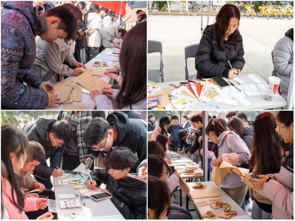线上活动中,同学们选取一本积极向上的书籍,运用“提炼核心思想、梳理知识框架、提取实用内容、付诸实践感悟”的四步阅读法,完成原创读书报告,并进行评选。作品格式规范、图文并茂,充分展现了学生的思考深度与创新意识。线下活动于12月17日中午在军歌美食广场举行,设置“珠联璧合”诗词飞花令、“别出心裁”创意书签制作和“情真意切”手工书信传递三大环节。同学们通过AI生成题目参与诗词挑战,利用智能工具设计个性化书签,或亲手书写书信分享阅读心得,在科技与人文的融合中感受阅读的乐趣。活动现场气氛热烈,参与者纷纷点赞这一兼具趣味性与教育意义的创新形式。