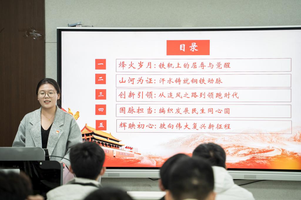 主讲同学们各显神通,从不同角度传递信仰的力量。沈晁旭讲解“红船精神”,以翔实的内容和生动的阐述,让同学们深刻领悟到红船精神所承载的初心与使命;余秀文聚焦“中国共产党引领下的铁路奋进史”,结合专业特色,展现党带领人民在铁路建设上的伟大成就,激发同学们的专业自豪感与爱国情。