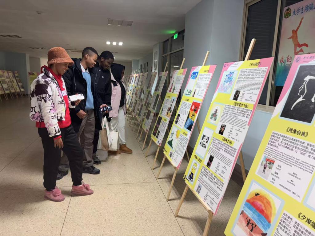 展览现场气氛热烈,吸引了众多师生驻足观赏。一幅幅色彩斑斓的画作与一张张构图精巧的照片,将观众带入了一个充满多元文化碰撞与交融的艺术世界,更承载了来华留学生对中国文化的深入观察、真诚体验与深厚情感。