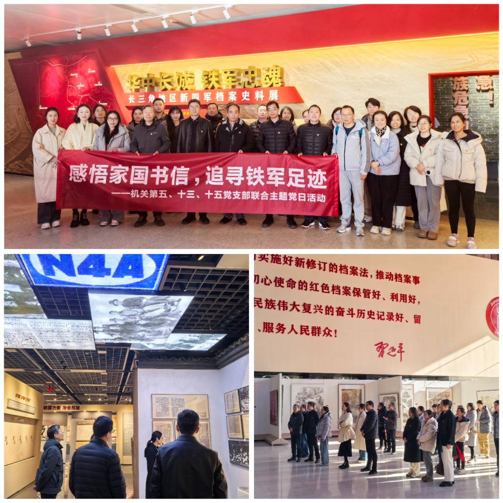 为深入学习弘扬伟大建党精神,传承红色基因,淬炼政治品格,12月25日下午,我校机关第五党支部、第十三党支部及第十五党支部前往江苏省档案馆,开展“感悟家国书信,追寻铁军足迹”主题党日活动。全体党员同志齐聚红色阵地,在珍贵档案史料中感悟初心使命,在历史回响中汲取奋进力量。