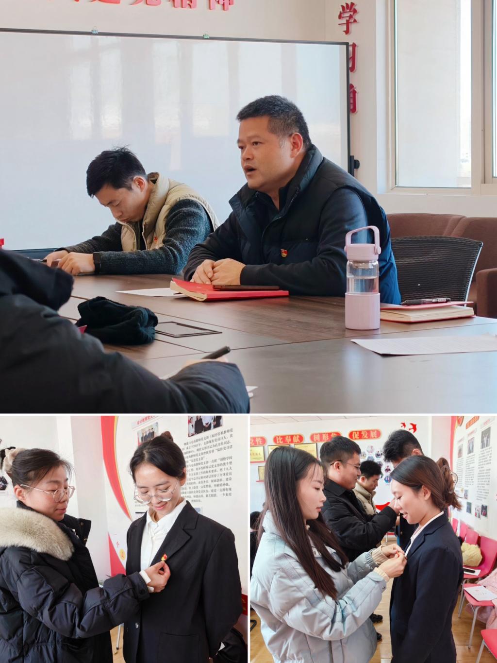 新党员们随即进行表态发言,表达坚守初心、积极进步的决心。学院党总支副书记陶荣兵对新党员表示祝贺,并勉励他们坚定理想信念,以党员标准严格要求自己,在学习与工作中切实发挥先锋模范作用。会议最后,入党介绍人为6名新党员佩戴党员徽章,大会在庄严氛围中结束。
