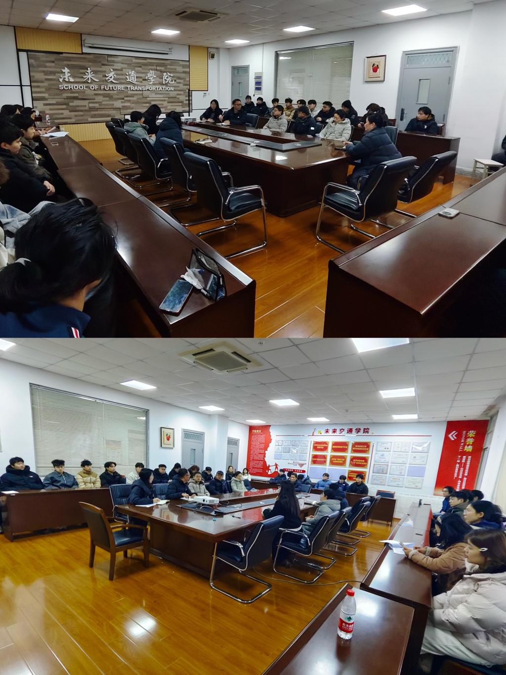 为切实保障寒假期间留校学生的人身安全、财产安全及校园稳定,进一步强化学生安全防范意识与自我保护能力,1月19日,未来交通学院召开寒假留校学生安全专题会议。学院教学副院长龙章勇、党总支副书记任维燕、学管主任王静、指导老师及40余名留校学生参会。