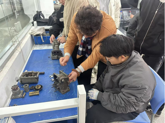 此次培训聚焦GKD1型内燃机车的核心系统,包括了机车总体、柴油机系统、制动系统以及电气控制系统,培训采用“理实一体化”教学模式,依托学院各类专业实训室,将课堂理论讲授、气阀拆装实践、电气故障处理等多种形式有机结合。来自机车车辆学院的专业教师和具有丰富现场经验的企业导师联合授课,确保了培训内容既紧扣该车型技术内容,又贴合企业生产实际需求。