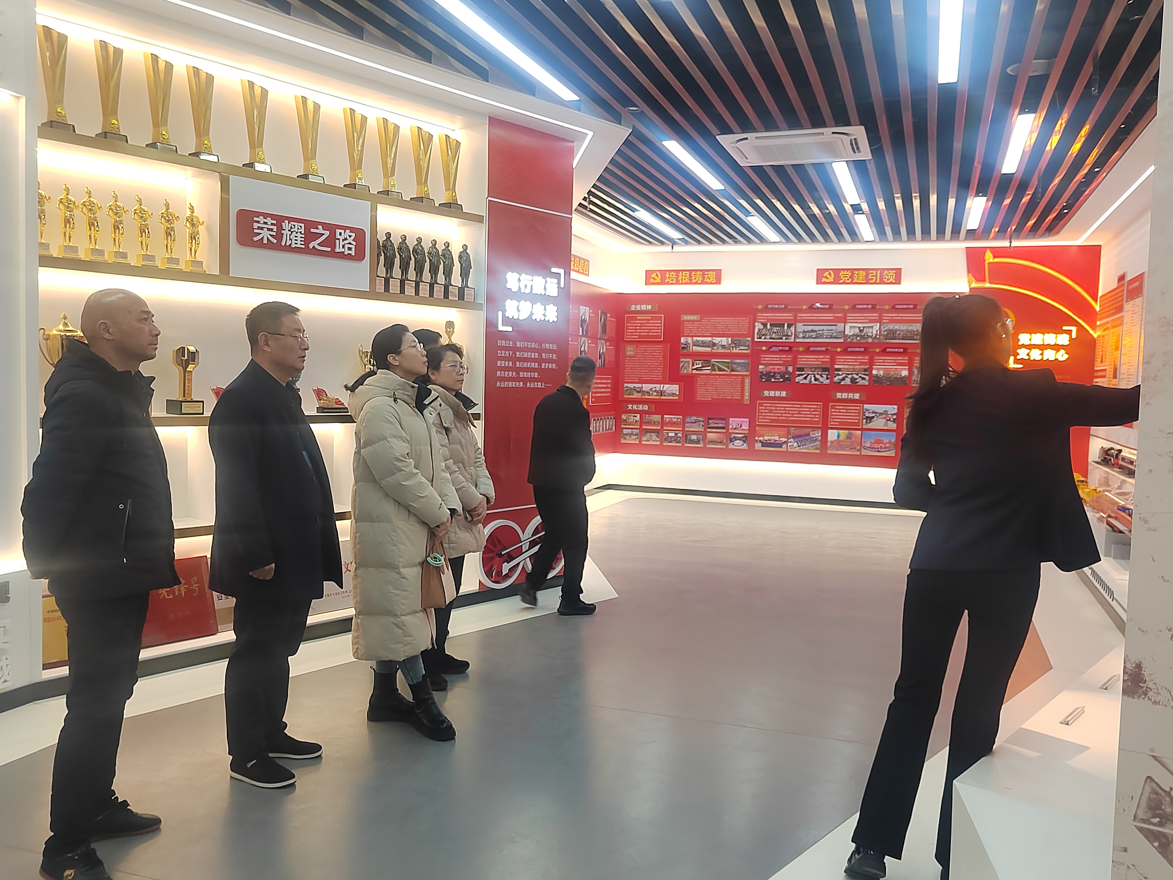 随后,调研团队走进中铁四局八分公司企业展厅,开启了一场深刻的企业文化浸润之旅。展厅内,通过历史图片、荣誉陈列、动态展板等多元展示形式,调研团队深刻感悟了中铁四局第八分公司“勇于争先 永不满足”的企业文化。