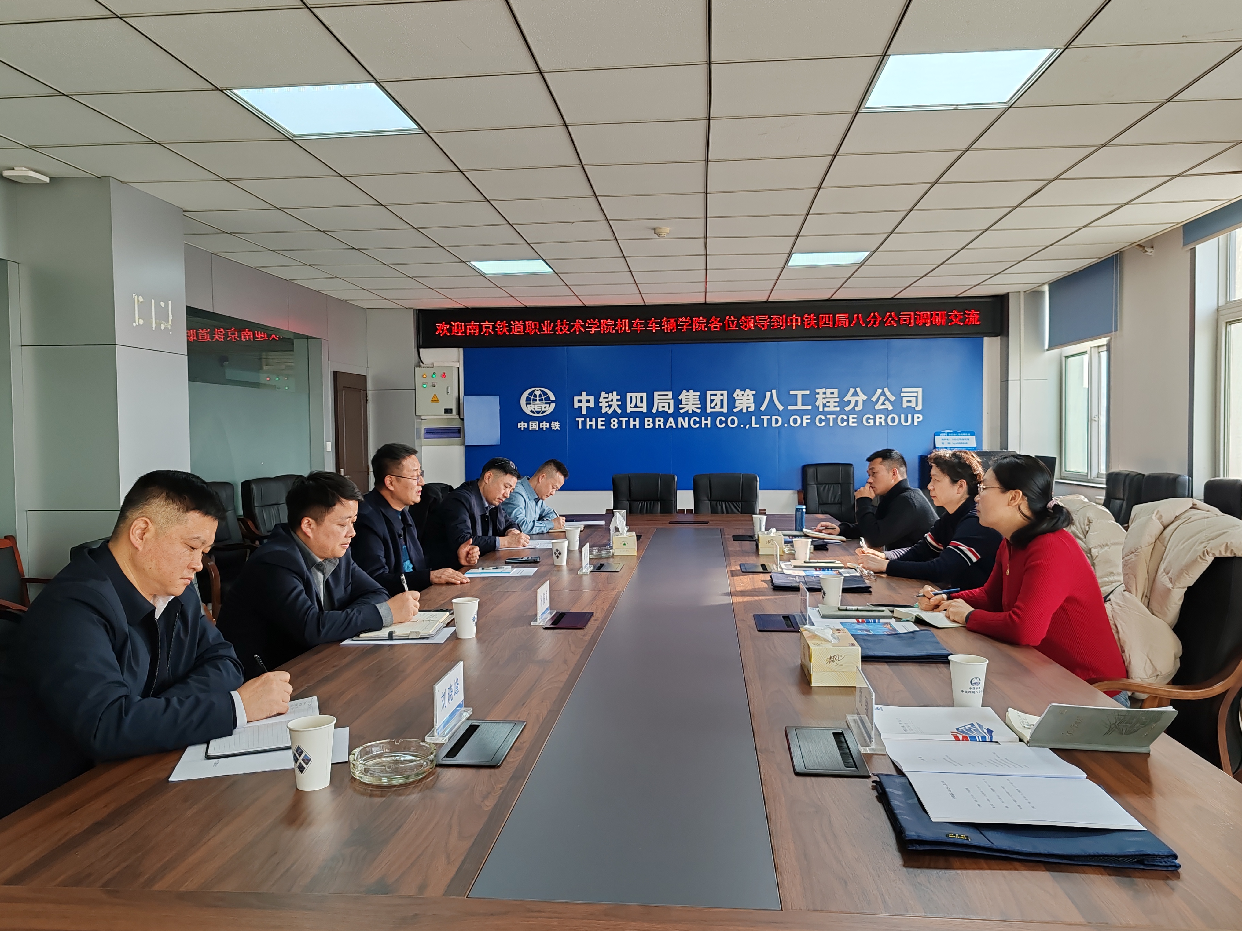 为深化校企合作内涵,精准对接行业人才需求,1月23日,机车车辆学院党总支书记沈艳丽、副院长姚春燕带队赴中铁四局集团第八工程分公司开展调研交流活动。中铁四局第八分公司副总经理胡佩杨携相关部门负责人表示热烈欢迎。本次调研交流内容涵盖司机考证培训洽谈、2026届顶岗实习学子慰问、校企深度座谈等多个环节。