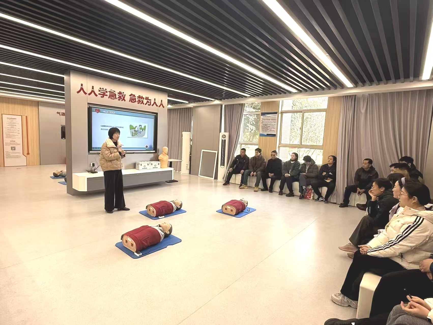 2026年2月28日下午,在应急救护实训基地,体育部为进一步规范体育教学流程,强化全体体育教师急救教学能力,切实提升学生急救意识与自我保护能力,筑牢校园体育安全防线,组织开展全体教师急救理论与技能教研活动。全体体育教师齐聚一堂,以研促教,扎实提升急救教学专业素养,为后续规范开展急救教学筑牢基础。
