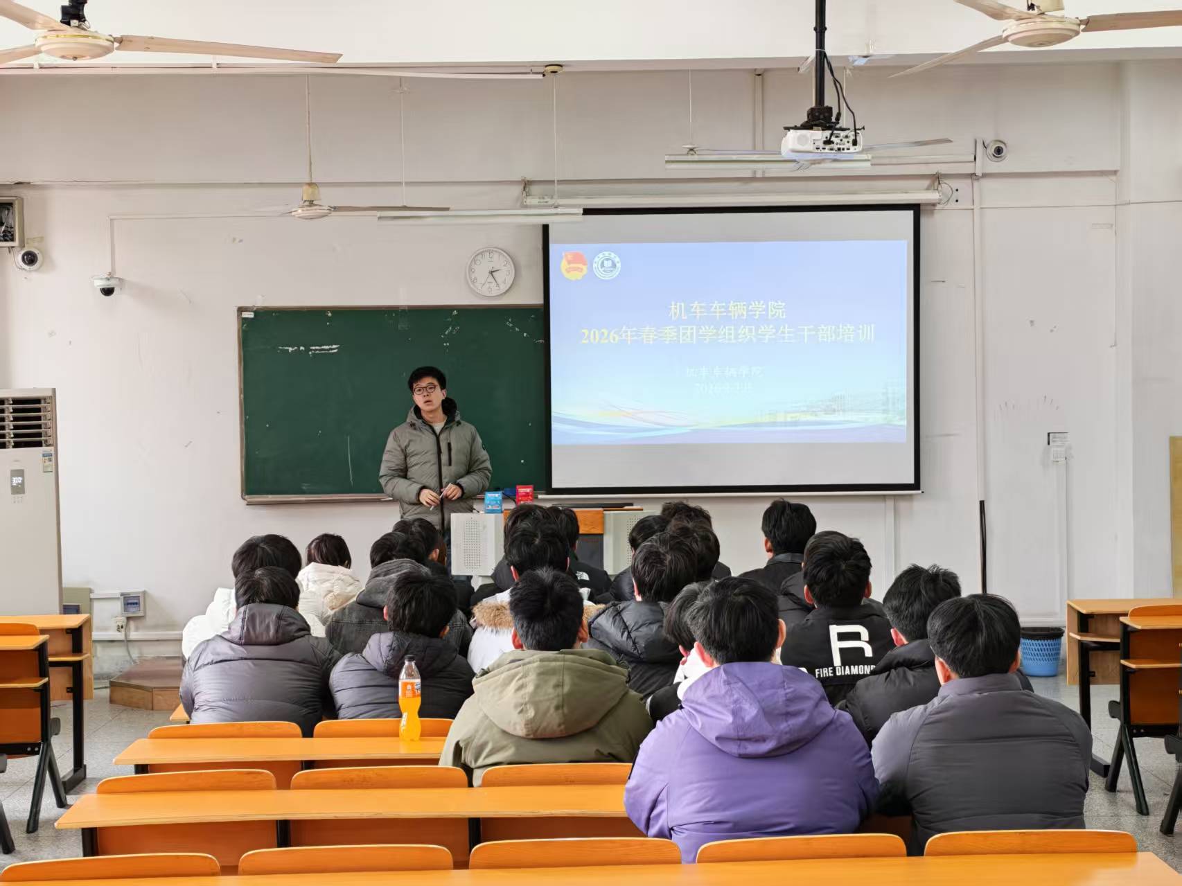 为夯实学院团学工作根基,明确新学期工作方向,近日,机车车辆学院团总支举办2026年春季团学干部培训会。会议由团总支书记陈浩博主持,全体团学组织学生干部参加会议。