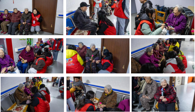 活动当天,志愿者们满怀热忱抵达敬老院,精心编排了文艺表演节目。《东方红》《没有共产党就没有新中国》等经典红歌回荡院落,老人们跟着节奏轻轻哼唱,幸福的笑容绽放在脸庞。敬老院职工带来的特色民俗表演更是赢得阵阵掌声,现场暖意浓浓。恰逢“三八”国际妇女节将至,志愿者们手捧鲜花送到奶奶们手中,送上“健康长寿”的真挚祝福,并围坐在老人身旁唠家常、话冷暖,用耐心陪伴驱散孤寂,用真切关怀温暖心灵,勾勒出青春与温情交融的美好图景。