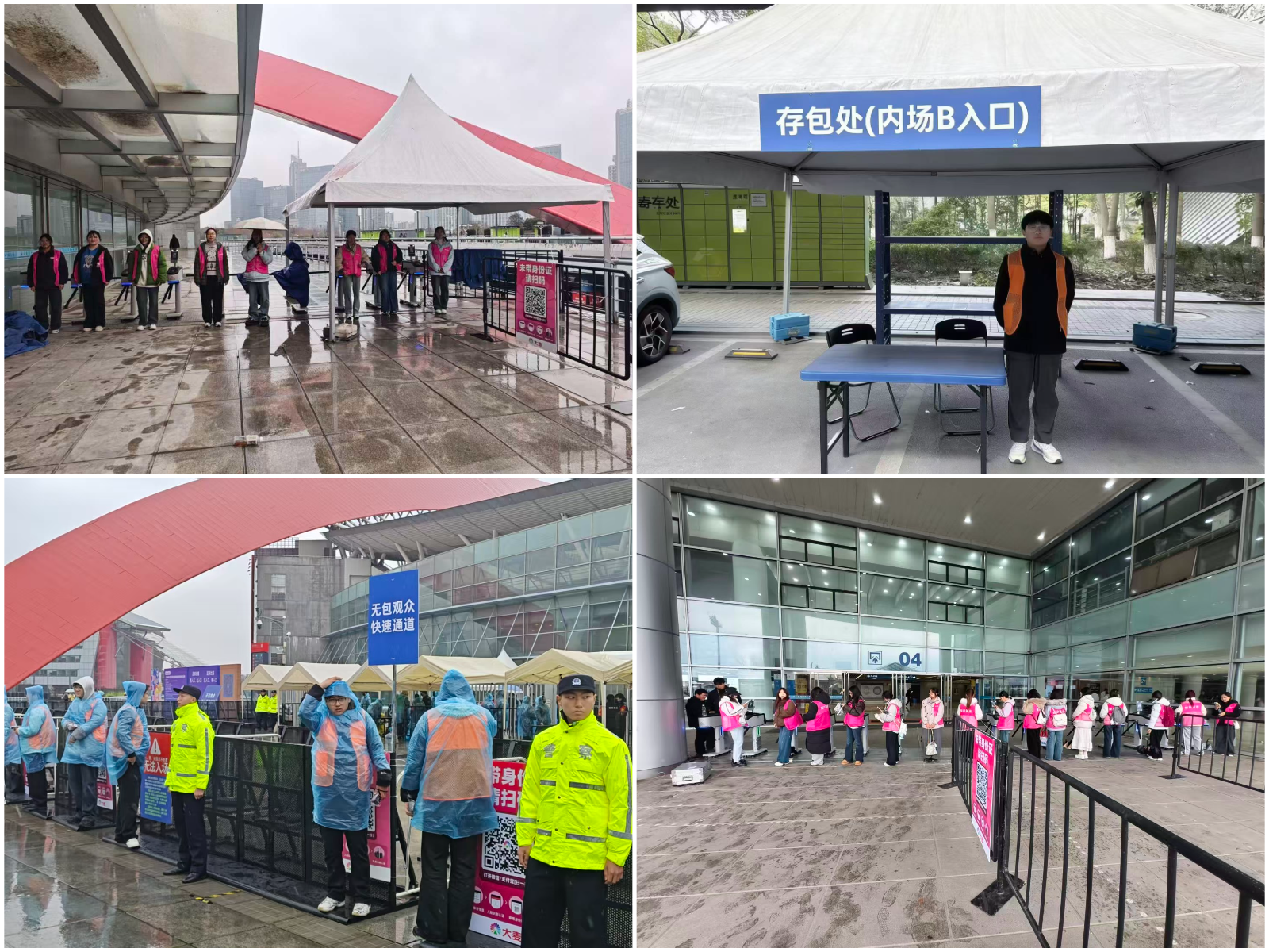 当日南京降雨,地面湿滑,但志愿者们服务热情未减。他们冒雨坚守在检票口、通道及寄存区,分工开展检票协助、观众引导、物品寄存等工作。面对雨天观赛的不便,志愿者们始终面带微笑,耐心指引座位与设施方向,及时清理通道积水隐患,主动搀扶老幼就座。雨水打湿了衣衫,却浇不灭心中的志愿热忱。