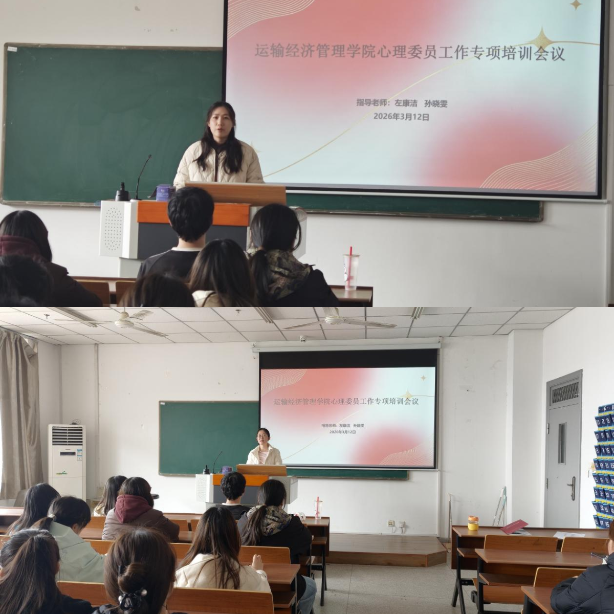 为进一步提升班级心理委员的工作能力,筑牢校园心理健康防护网,3月12日下午,运输经济管理学院在炎培楼D506召开心理委员工作专项培训会议。学院心理辅导员左康洁主持会议,年级辅导员孙晓雯和全体大一、大二心理委员参加会议。
