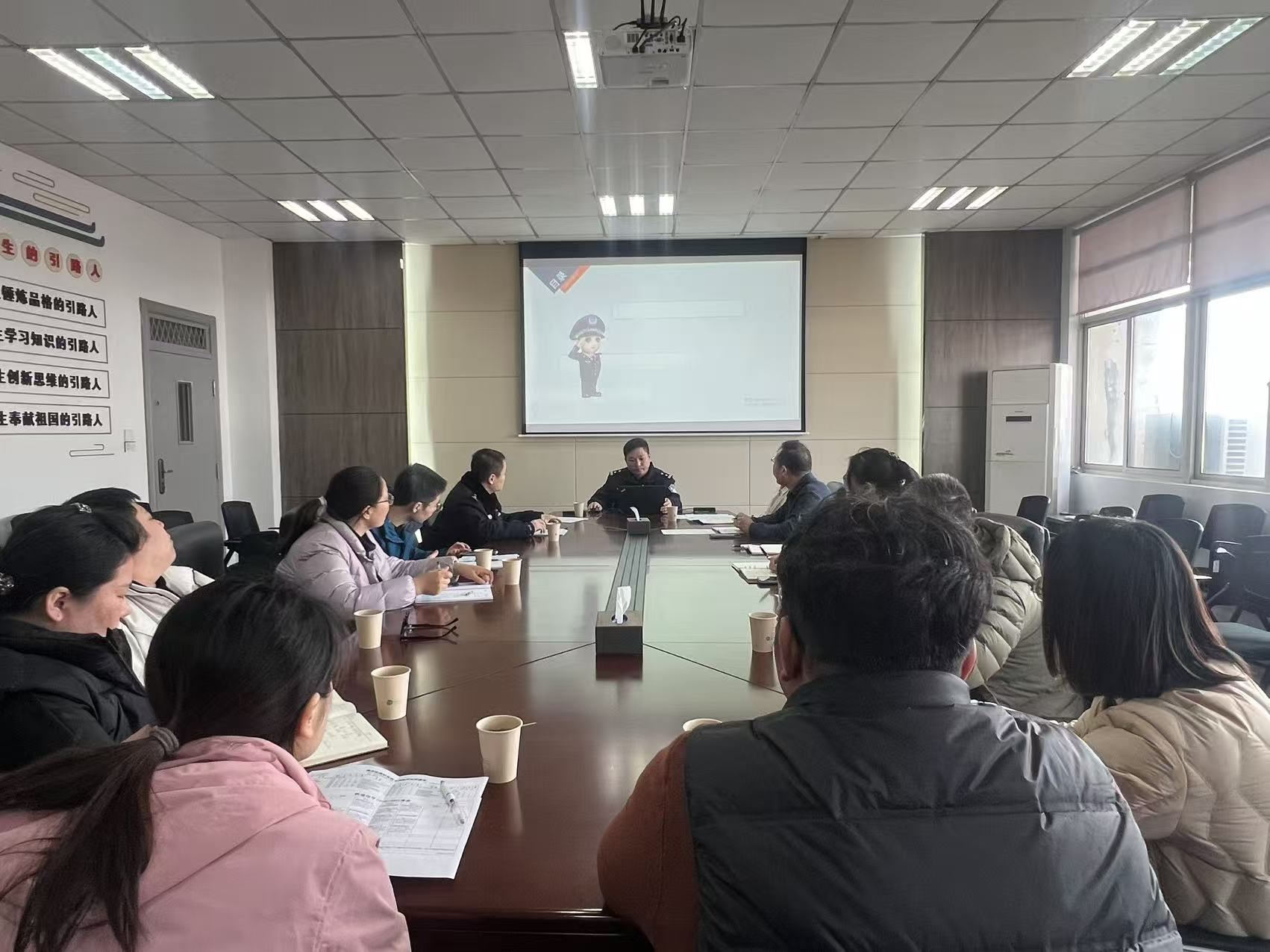 为增强师生防范电信诈骗意识,遏制校园诈骗案件高发态势,3月12日,安全保卫处组织召开了防范电信诈骗工作培训交流会。江北新区公安分局内保大队王效忠警官、顶山派出所肖凯警官及各学院学工办主任、年级辅导员参会。