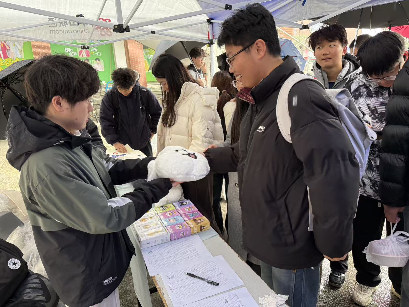 3月18日中午,绵绵春雨浸润校园,却未冲淡半分青春热忱。机车车辆学院心晴工作站在梅花广场如期举办“乒去烦忧,心暖如晴”3·20心理健康周主题活动,300名学子冒雨赴约,在趣味乒乓投掷中,以运动活力驱散阴云,拥抱心灵暖阳。