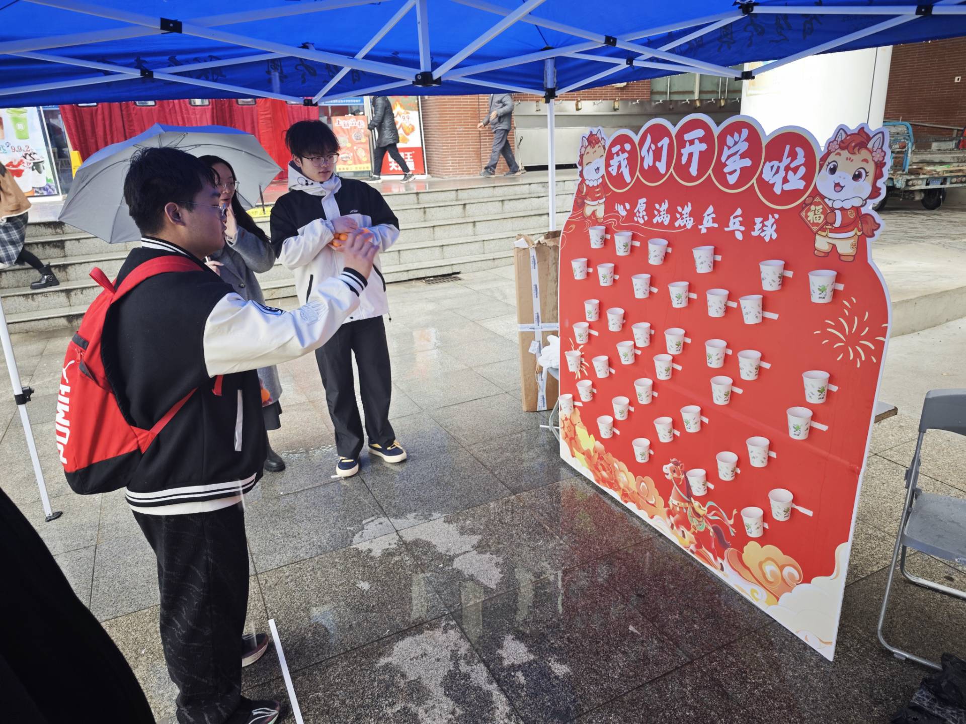 本次活动紧扣“320”谐音“咱爱您”的温情内核,将关注情绪、重视心理健康的理念,藏进充满活力的乒乓元素里。一面贴满纸杯的投掷墙在雨幕中错落排列,静候同学们前来挑战。