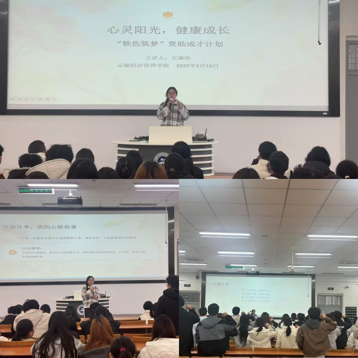为响应学校“铁色筑梦”资助成才计划,关注学生心灵成长,缓解其学业、生活中的心理压力,3月18日下午,运输经济管理学院在励行讲堂201开展“心灵阳光,健康成长”心理健康主题活动。学院心理辅导员左康洁主持活动,年级辅导员孙晓雯和学院资助对象参加活动。