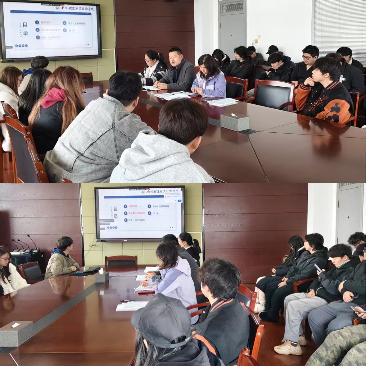 最后,陶荣兵强调,学业是大学生成长成才的核心任务,希望全体参会同学高度重视学业问题,认真研读学生手册及相关政策规定,主动对照人才培养方案补齐短板、强化弱项,严格按照要求完成各项学习任务,稳步达成毕业条件。学院将持续做好教学与学管协同联动,为同学们提供全过程学业指导与帮扶,助力大家顺利完成学业、成长成才。
