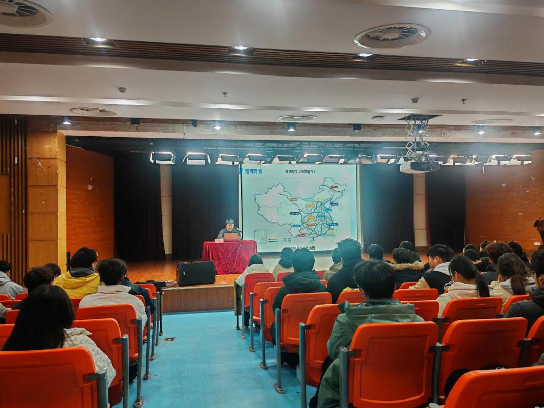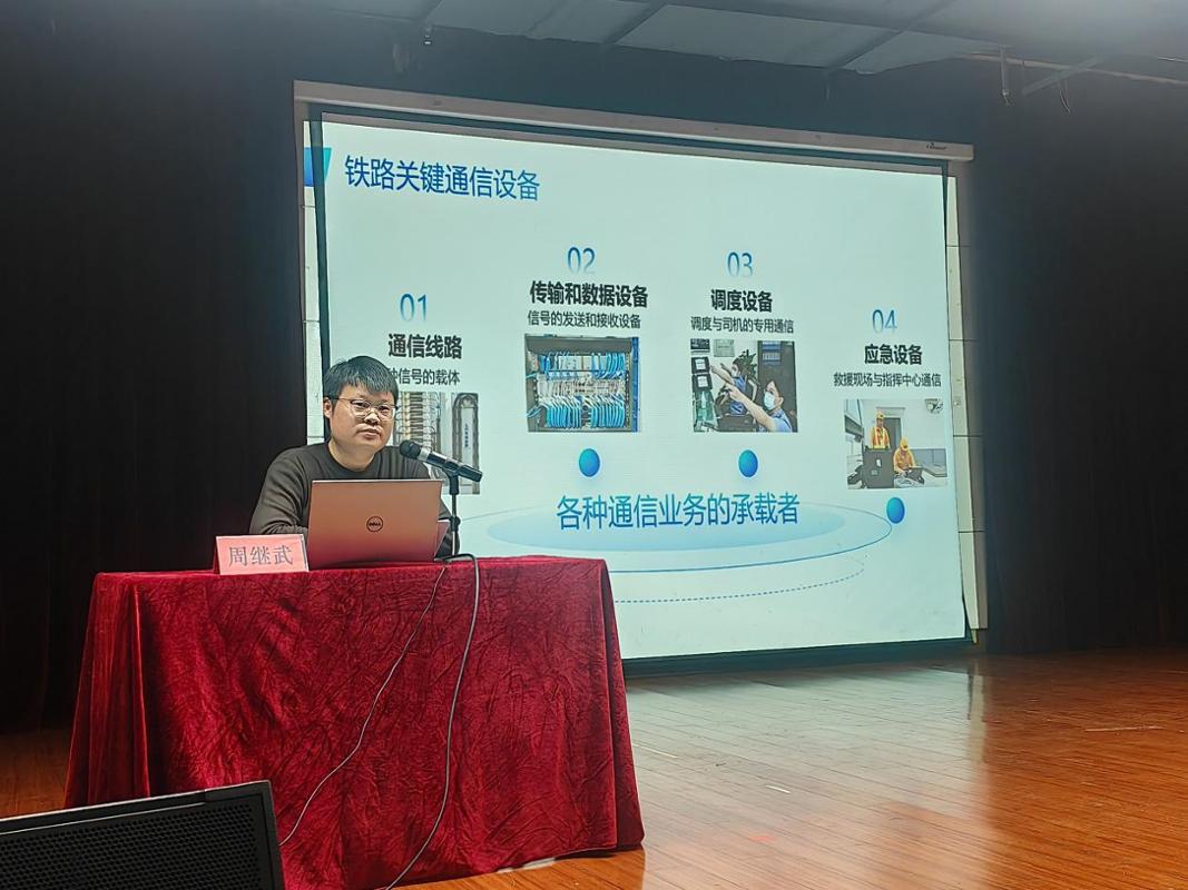 讲座中,周继武结合自身从校园学子到铁路专家的成长轨迹,围绕“中国铁路和上海局集团公司概况”“安全畅通背后的秘密——铁路通信系统”“人才需求画像——通信系统需要怎样的你?”“成长路径与职业舞台”等五个维度,用生动的案例和详实的数据,全景式展现了铁路通信工的工作日常、技术前沿与职业前景。他特别强调,在校期间扎实的专业基础、熟练的实践技能和严谨的安全责任意识,是未来胜任岗位的关键“通行证”。