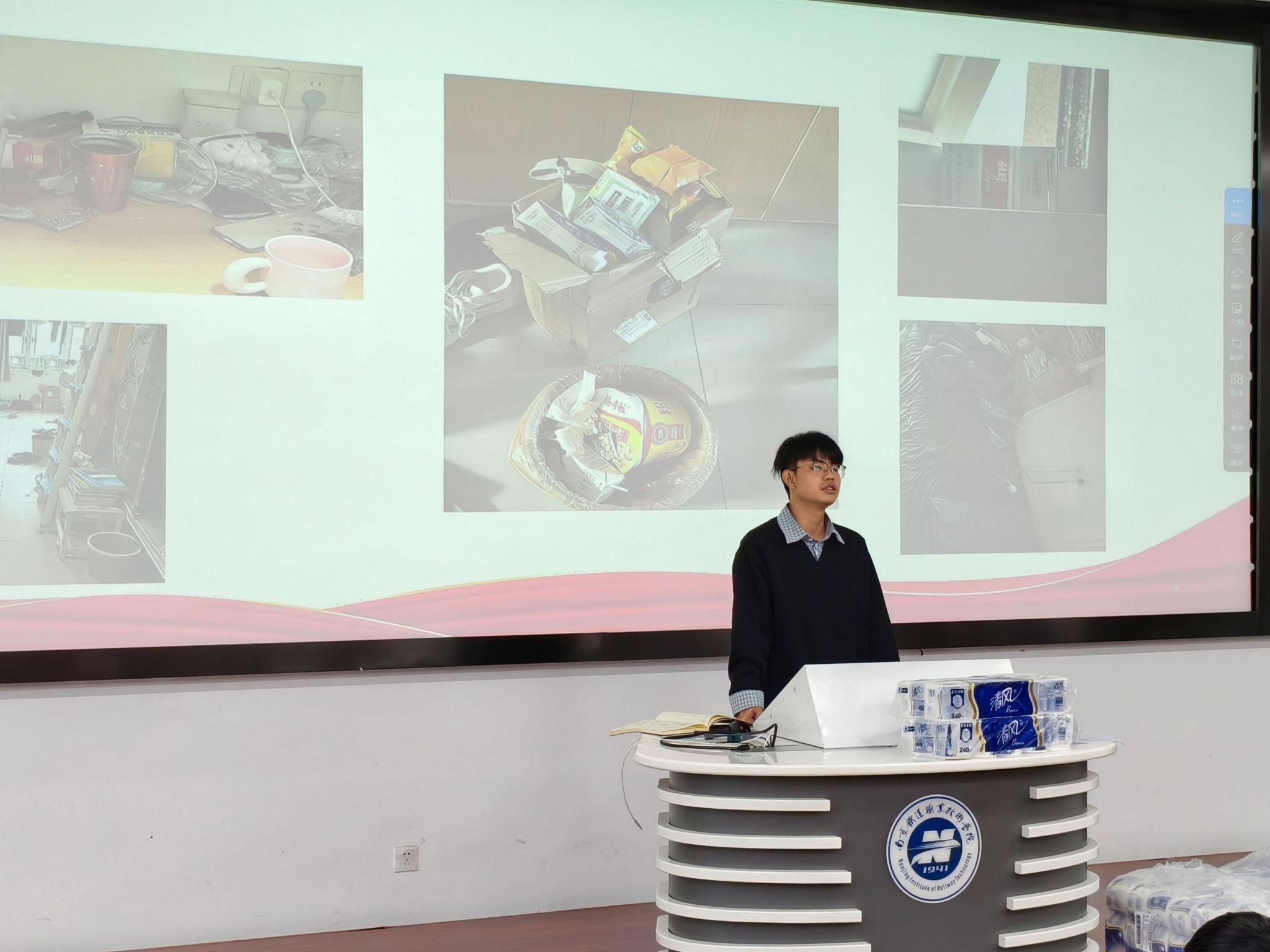 最后,在场辅导员为荣获“三和谐”称号的宿舍颁发奖品并合影留念。老师们寄语全体学生,以本次受表彰的宿舍为榜样,积极建设好宿舍文化生活,投身于文明校园的建设中。