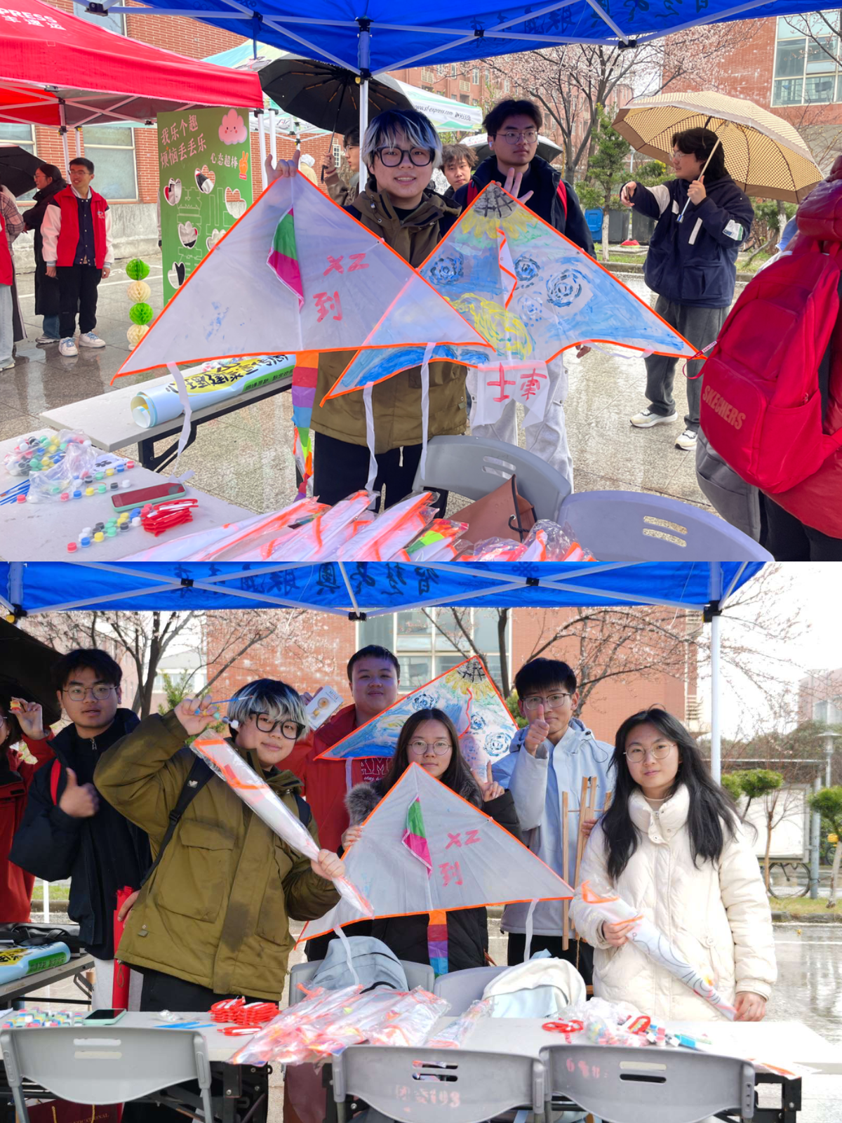 活动当天虽遇降雨,但师生参与热情不减,现场气氛热烈。本次活动精心设计了三大互动板块,将心理健康教育与德育、体育、美育有机融合。“执笔绘鸢,逐梦春风”区域,同学们以风筝为画布,用五彩颜料自由创作,将心中的梦想与情感描绘于风筝之上,在艺术表达中实现情绪释放与自我对话。绘制完成的风筝将由同学们自行保留,寓意将美好心愿珍藏于心、待晴日放飞。