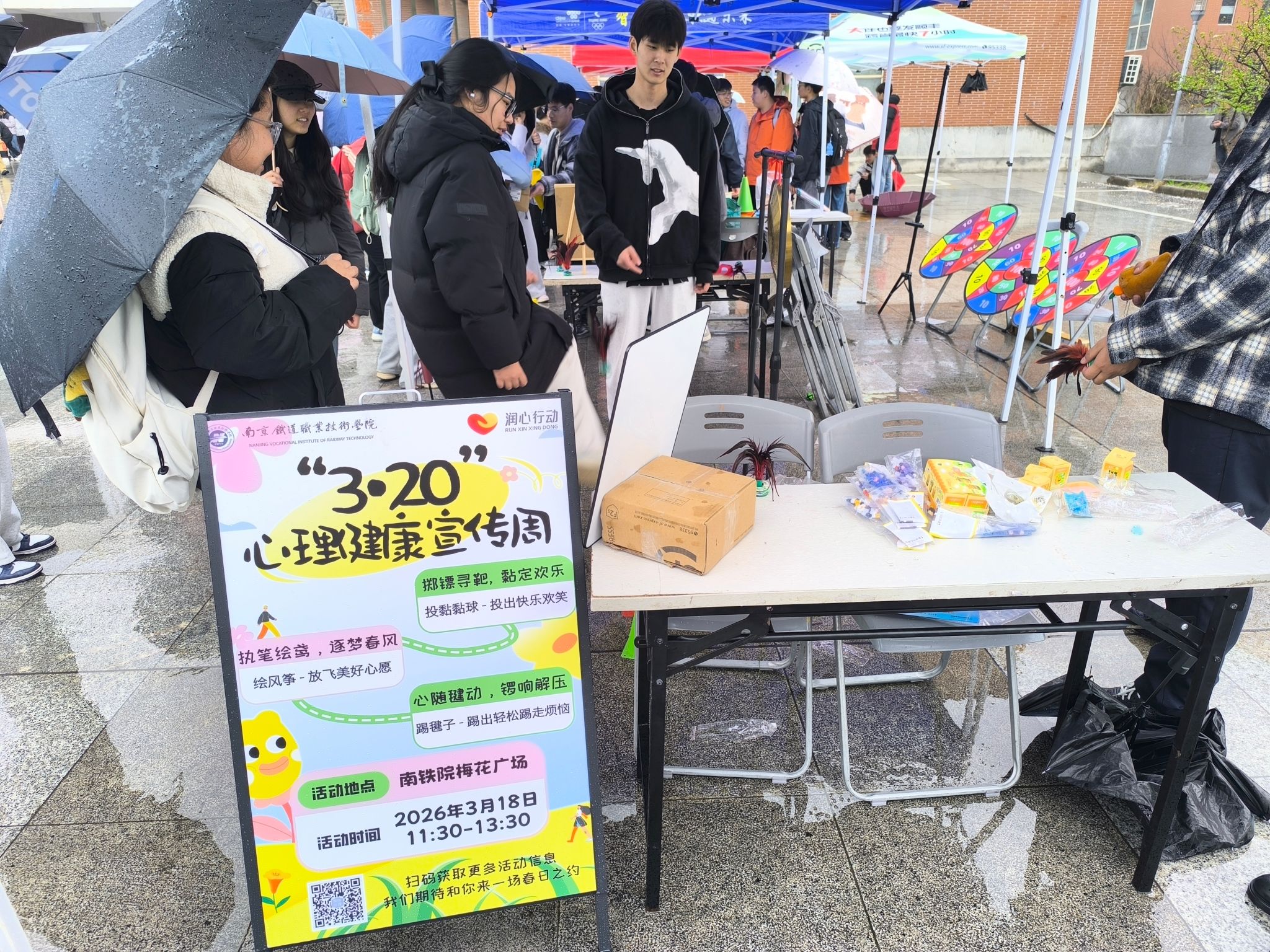 为全面落实立德树人根本任务,深入贯彻“健康第一”的教育理念,扎实推进“润心”行动工作要求,3月18日上午,由我校心理健康教育中心、素质教育部联合举办的第十三届“3·20心理健康宣传周”广场活动在梅花广场举行。活动以“手绘心语·逐梦春风”为主题,通过创意互动体验引导学生关注心理健康、培育积极心态,全校近1000名师生积极参与。