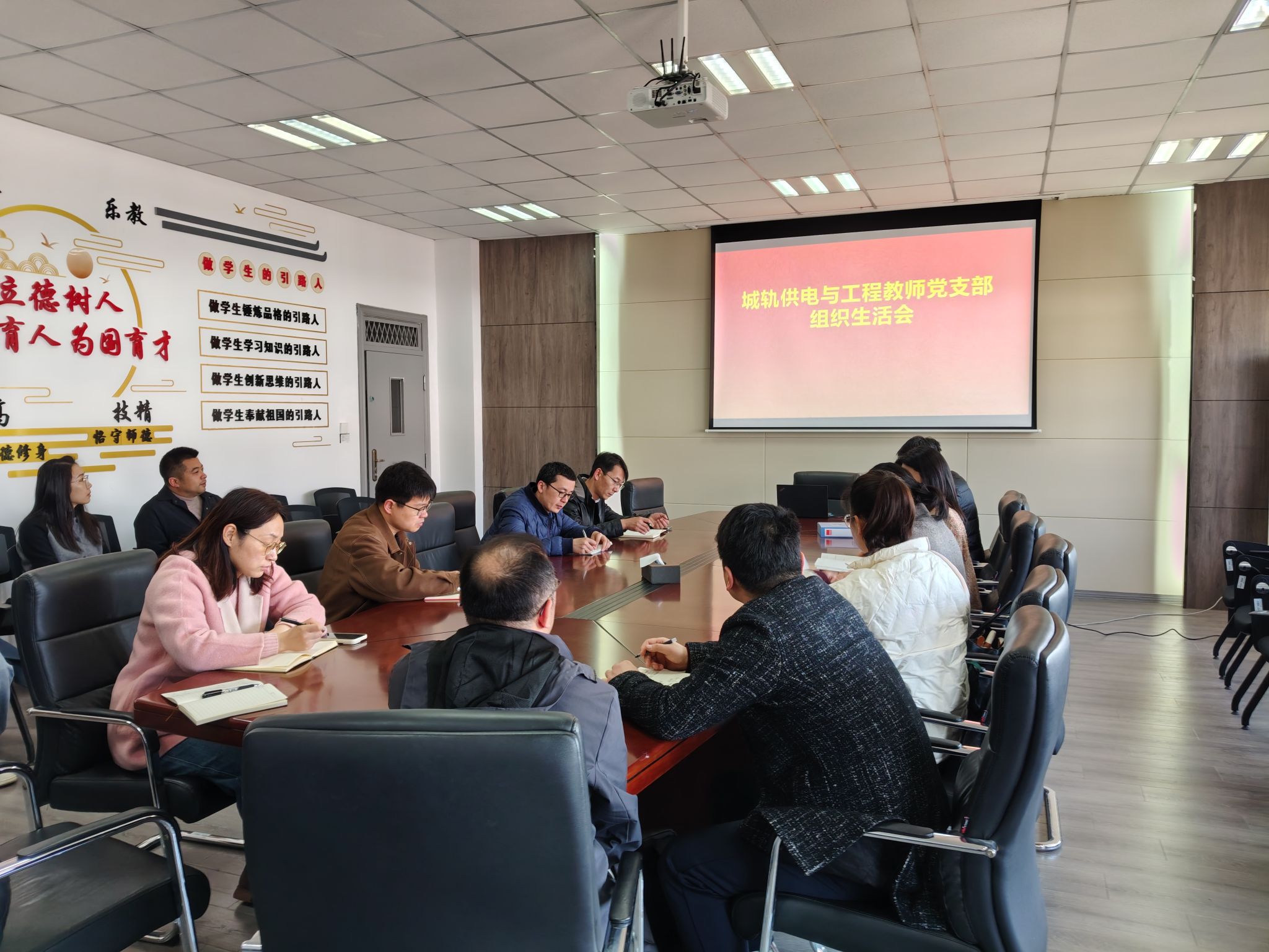 2026年3月25日下午,城轨供电与工程教师党支部在天佑楼D525会议室召开2025年度组织生活会暨民主评议党员会议。支部全体党员参加会议,会议围绕深入学习贯彻习近平新时代中国特色社会主义思想,全面贯彻落实党的二十届四中全会精神,锲而不舍落实中央八项规定精神,推进作风建设常态化长效化展开。