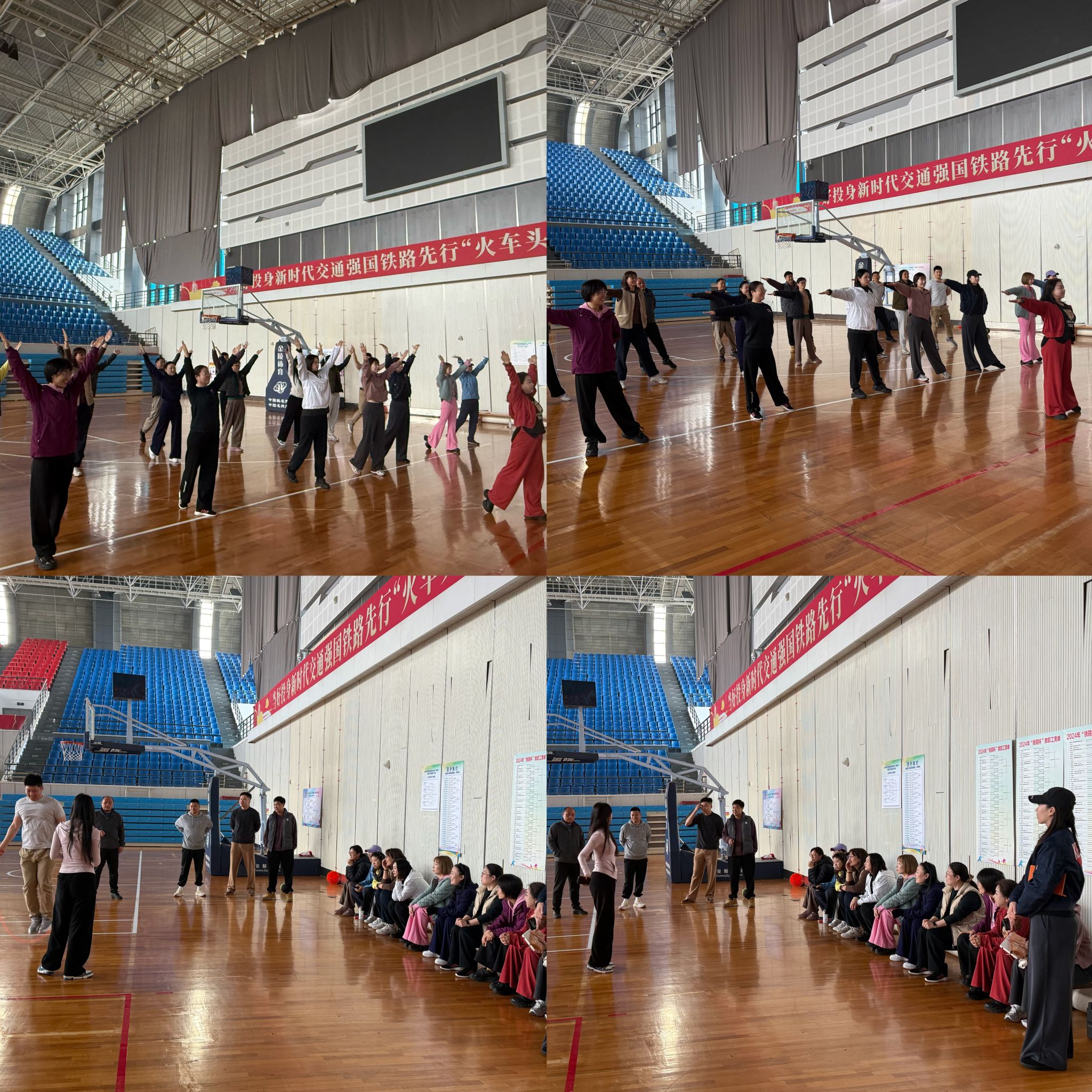 董元卿教师围绕健美操、啦啦操项目培训班学习内容,从动作编排、课堂教学技巧、团队队形设计、赛事评分标准等方面进行细致分享,结合我校减脂塑形课、体育社团建设实际,交流了健美操与啦啦操在校园体育教学、文体活动中的融合应用路径。